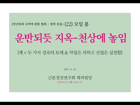 ▣ 앙굿따라 니까야 관통 법회 4(211-220) 운반되듯 지옥-천상에 놓임[계 = 두 가지 성숙의 토대 & 악업은 피하고 선업은 실천함](근본경전연구회 해피스님 251218)