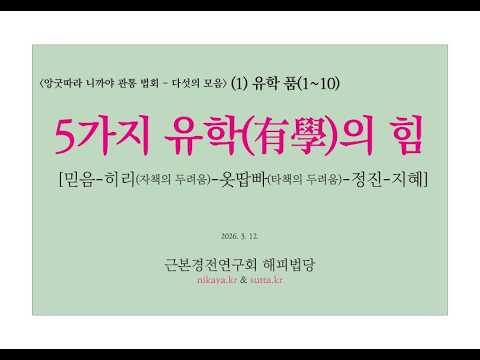 (앙굿따라 니까야 관통 법회 다섯의 모음) 1 유학 품(1~10) 5가지 유학의 힘(믿음-히리-옷땁빠-정진-지혜)[= 부정적 요소의 방어](근본경전연구회 해피스님 260312)