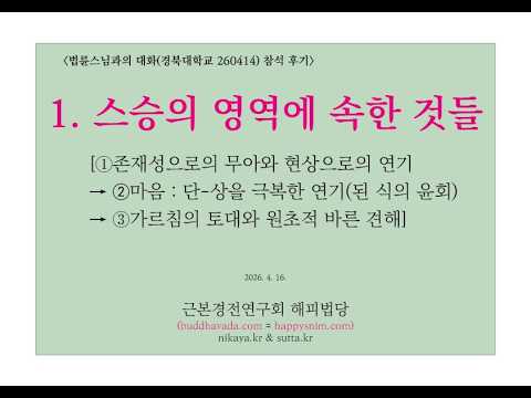 ▣ 법륜스님과의 대화(경북대학교 260414) 참석 후기① ― 우리 스님 말고 부처님 신자 되기 & 스승의 영역에 속한 것들[존재성으로의 무아와 현상으로의 연기](해피스님)