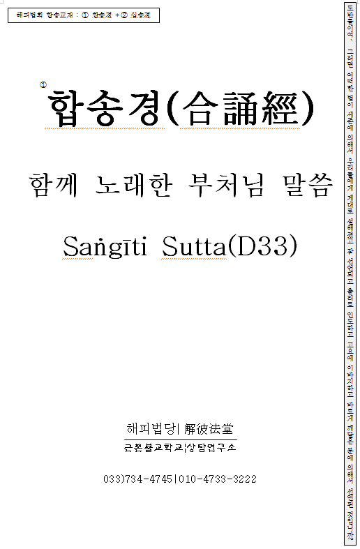 대개의 경들이 하나의 사건에 대한 기록이라면 위의 두 가지 경은 많은 경전들에서 추출한 요점정리와도 같은 경전이라 할 것입니다. 그러면서도 디가 니까야의 33~34번 경전으로 올라 근본경전으로서의 권위를 확보하고 있으니 불자로서 합송하기에 가장 알맞은 경전이라 할 것입니다.