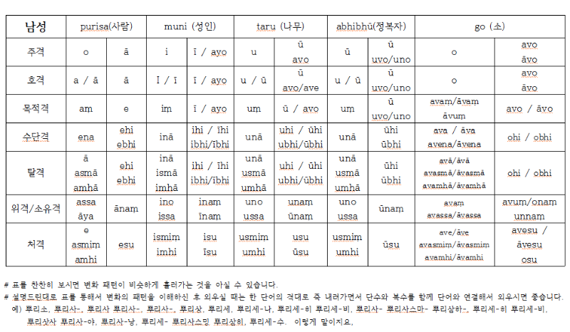빠알리 격변화표 ㅡ 예시(남성/중성/여성)