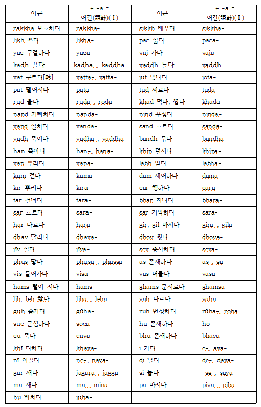 ; 동일한 어근(語根)으로부터 두 세종의 어간(語幹)이 만들어지는 경우 있음