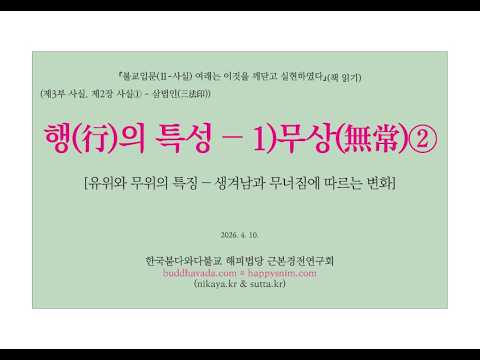 ▣ 불교입문(Ⅱ-사실-책 읽기 260410)(제3부 사실, 제2장 사실① - 삼법인) Ⅲ. [3] 무상(無常)-고(苦)②[유위와 무위의 특징 ― 생겨남과 무너짐에 따르는 변화]