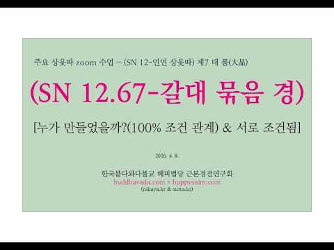 ▣ (SN 12-인연 상윳따 260408 zoom) 제7 대품 (SN 12.67-갈대 묶음 경)[누가 만들었을까?(100% 조건 관계) & 서로 조건됨](업보는 있지만 작자는 없다)(해피스님)