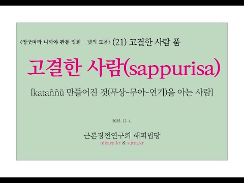 앙굿따라 니까야 관통 법회 4(201)고결한 사람(sappurisa)의 이해[kataññū 만들어진 것(무상-무아-연기)을 아는 사람](근본경전연구회 해피스님 250724)