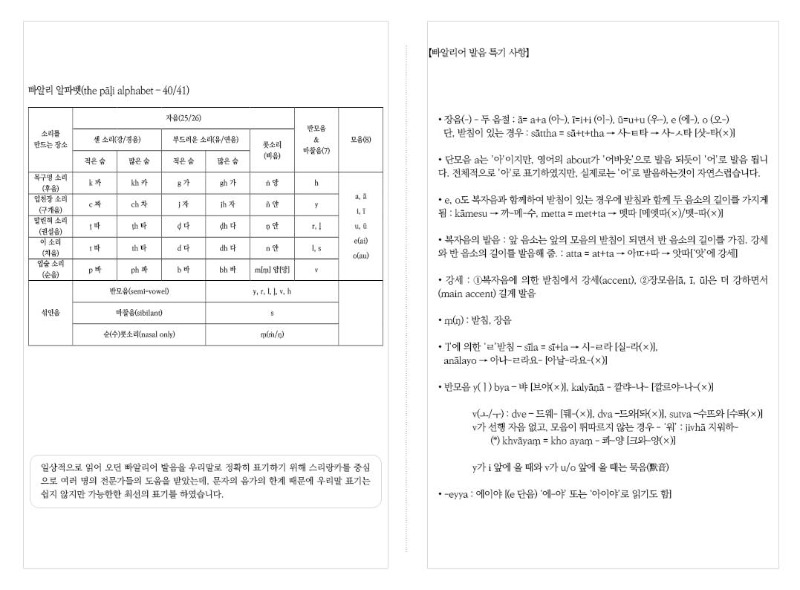 빠알리 알파벳과 발음 특기 사항