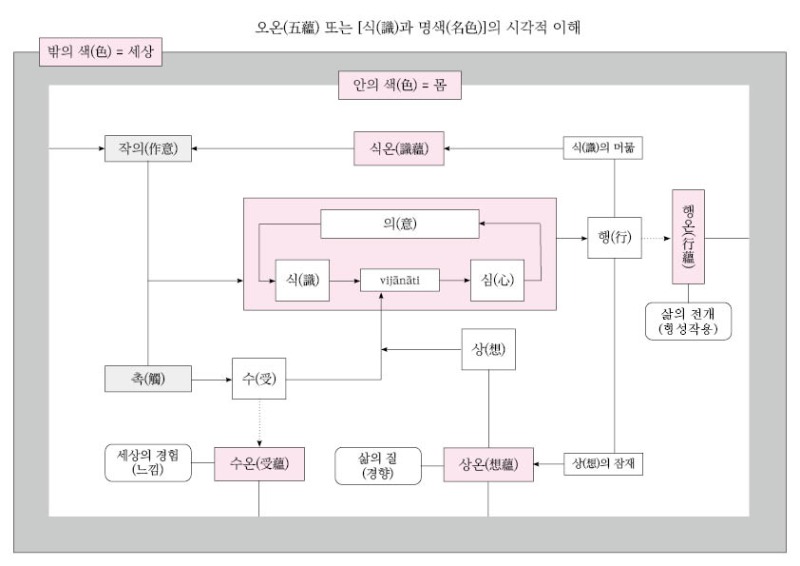 여기서 ‘명색의 참여’는 몸에 구속된 존재의 특성에서 이해해야 하는데, 명색을 구성하는 색(色)-수(受)-상(想)-사(思)[행(行)]도 무더기[온(蘊)]입니다.