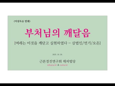 ▣ (아침독송 발췌 251020) 부처님의 깨달음[여래는 이것을 깨닫고 실현하였다 ‒ 삼법인-연기-오온](근본경전연구회 해피스님)