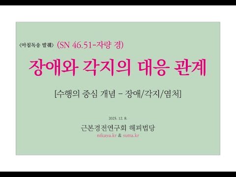 ▣ (아침독송 발췌 251208) (SN 46.51-자량 경)[장애와 각지의 대응 관계 → 수행의 중심 개념(사념처=후방→장애의 제거, 칠각지=전방→명과 해탈)](근본경전연구회 해피스님)