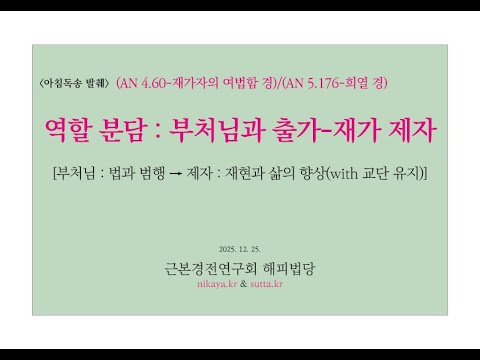 ▣ (아침독송 발췌 251225) (AN 4.60-재가자의 여법함 경), (AN 5.176-희열 경)[역할 분담 ― 부처님-출가제자-재가제자의 역할](근본경전연구회 해피스님)