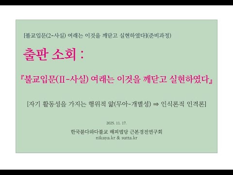 ▣ 『불교입문(Ⅱ-사실) 여래는 이것을 깨닫고 실현하였다』 출판 소회 ― 자기 활동성을 가지는 행위적 앎(무아-개별성) ⇒ 인식론적 인격론(근본경전연구회 해피스님 251117)
