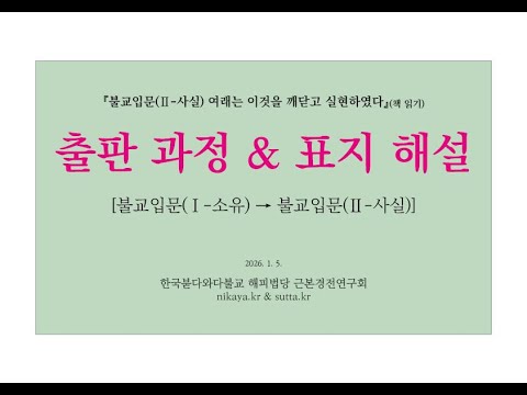 1. 불교입문(Ⅰ-소유)로부터 불교입문(Ⅱ-사실)을 출판하는 과정을 소개하였습니다. 2020년 불교입문(Ⅰ-소유)의 출판 이후 4부 니까야 관통의 과정을 진행하고 있는데, 전체 관통 이후에 불교입문(Ⅱ-사실)을 출판하고 싶지만, 이 공부를 필요로 하는 사람들을 위해 중간의 완성 상태로 먼저 출판하게 되었습니다.