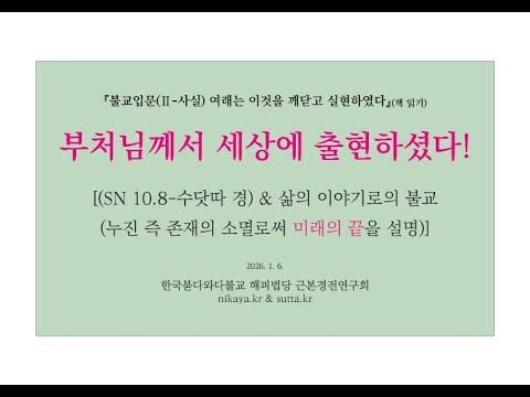 ▣ 불교입문(Ⅱ-사실)(책 읽기 260106) 부처님께서 세상에 출현하셨다(SN 10.8-수닷따 경) & 삶의 이야기로의 불교[누진 즉 존재의 소멸로써 미래의 끝을 설명](해피스님)