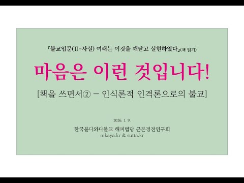 ▣ 불교입문(Ⅱ-사실)(책 읽기 260109) 책을 쓰면서② 마음은 이런 것입니다! (인식론적 인격론으로의 불교, 그 지평을 열며)(근본경전연구회 해피스님)