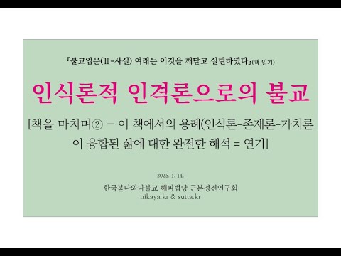 ▣ 불교입문(Ⅱ-사실)(책 읽기 260114) 책을 마치며② 인식론적 인격론 → 이 책에서의 용례[인식론-존재론-가치론이 융합된 삶에 대한 완전한 해석 = 연기](해피스님)