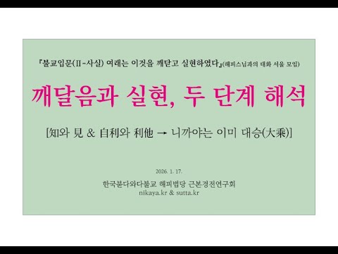 ▣ (불교입문 2-사실 책 강의 ― 서울 모임 260117) (제목) 여래는 이것을 깨닫고 실현하였다[깨달음과 실현 두 단계 해석 ― 니까야는 이미 대승(大乘)](근본경전연구회 해피스님)