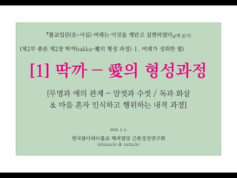 ▣ 불교입문(Ⅱ-사실-책 읽기 260304) (제2부 총론) 제2장 딱까 Ⅰ.여래가 성취한 법 [1]딱까 ― 愛의 형성 과정[무명과 애의 관계 & 내면의 영역]](근본경전연구회 해피스님)