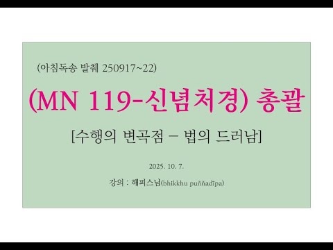▣ (아침독송 발췌 250917-0922) (MN 119-신념처경) 총괄[수행의 변곡점 ‒ 법의 드러남](근본경전연구회 해피스님 251007)