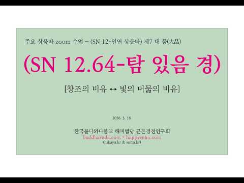 ▣ (SN 12-인연 상윳따 260318 zoom) 제7 대품 (SN 12.64-탐 있음 경)[창조의 비유 ↔ 빛의 머묾의 비유](근본경전연구회 해피스님)