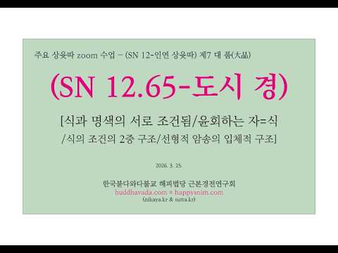▣ (SN 12-인연 상윳따 260325 zoom) 제7 대품 (SN 12.65-도시 경)[식과 명색의 서로 조건됨/윤회하는 자=식/식의 조건의 2중 구조/선형적 암송의 입체적 구조](해피스님)